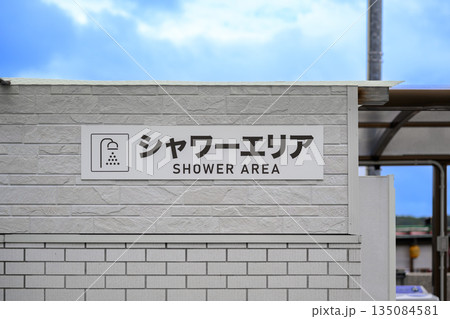 シャワーエリアの案内看板と青空 【撮影協力:隠岐シーサイドリゾートみやび様】