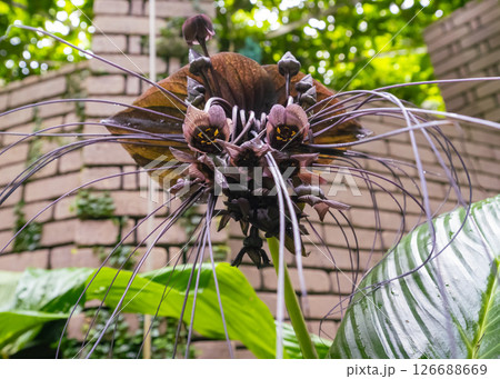 温室で咲いた珍しいタッカ・シャントリエリの花