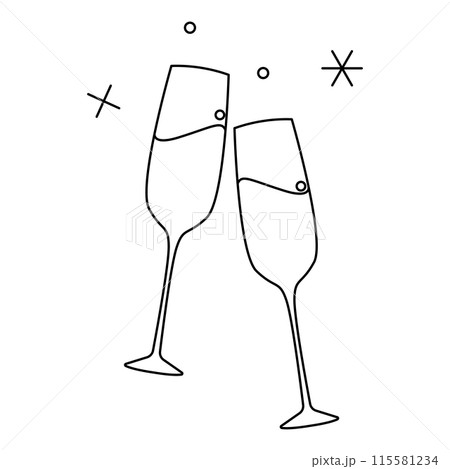 シャンパングラスの線画イラスト、乾杯、アイコン素材