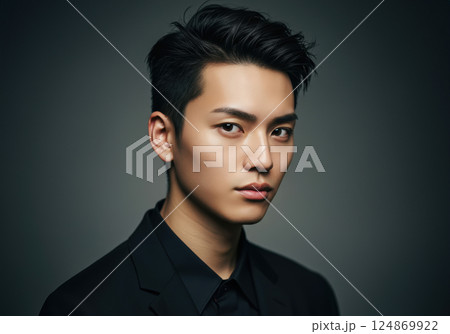クールで洗練された短髪の日本人男性のポートレート(AI生成画像)