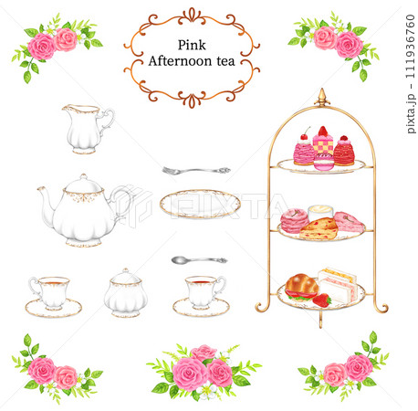 ピンク系のアフタヌーンティーのセット
