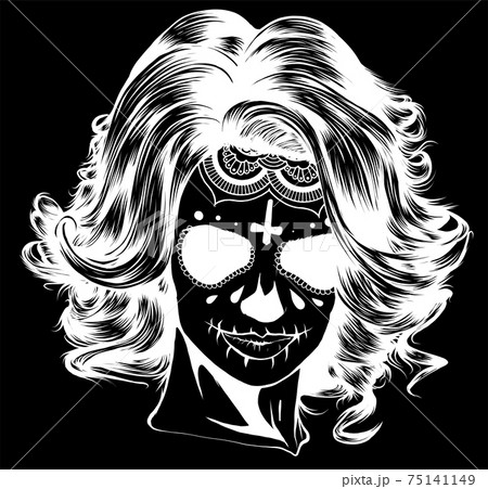 draw in black and white of woman face with skull and flower illustration