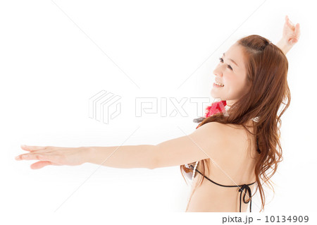 南国の雰囲気たっぷりのタヒチアンダンスを楽しそうに踊る綺麗な女性