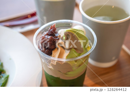Delicious matcha soft-serve with bean paste famous dessert in Uji Kyoto Japan
