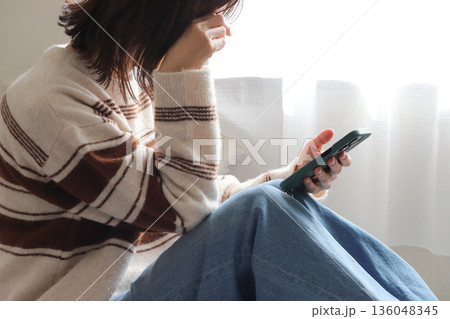 スマホを見て泣く女性