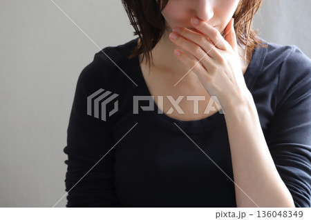 口元に手を当てる女性のしぐさ 悩みや不安