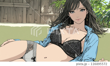 下着姿に上着を羽織ったセクシーな女性のイラスト