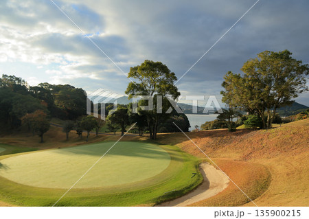 九州 長崎市 オーシャンパレスゴルフクラブ6番ショート打ち下ろしグリーン