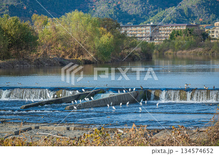 宇治川観流橋付近でエサを狙うシラサギ 宇治市