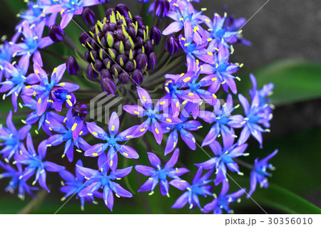 星型の小花を傘型に付けるオオツルボの紫色の花