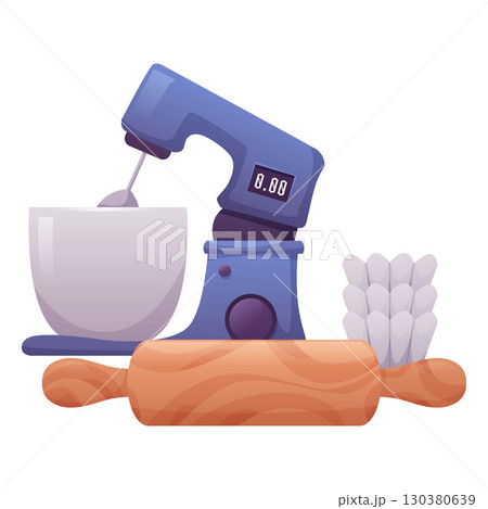 Kitchen equipment and appliance, mixer machine, vector cartoon rolling pin, blender, cupcake mold forms, bakery pastry
