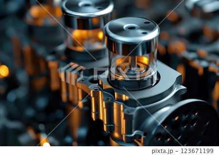 At modern engine with gears, pistons are attached to latest technological valves in cylinders AI Generative