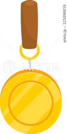 A golden round object with a brown wooden handle and a golden ring, isolated on a black background.