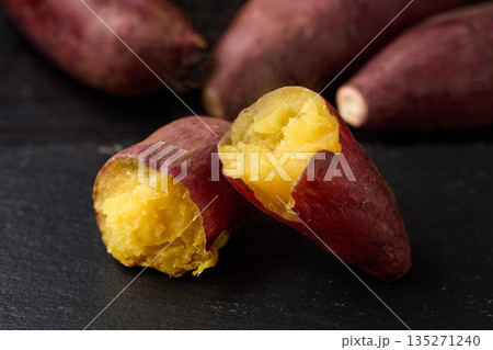 焼き芋 シルクスイート 2つに割ったところ 甘い しっとり滑らか