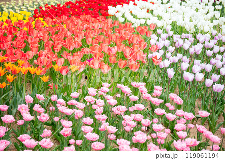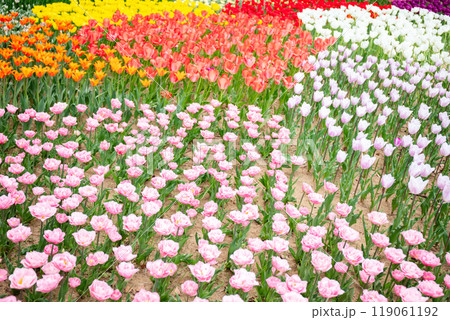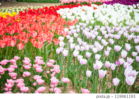 【ひたち海浜公園】見頃を迎えたたまごの森のチューリップ