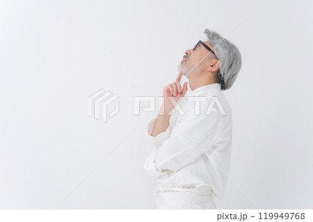 白衣を着たシニア女性 カメラ目線 ポートレート