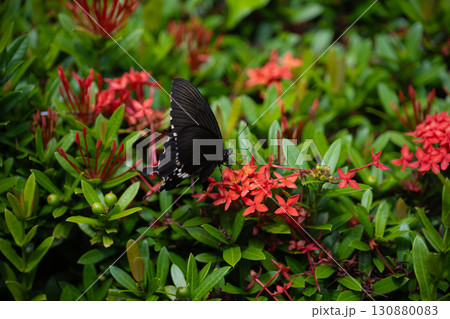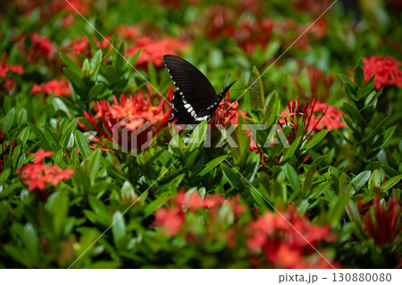 サンタンカで吸蜜するシロオビアゲハ