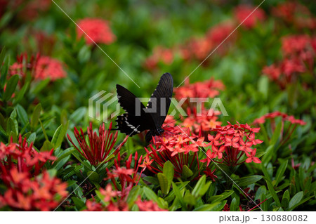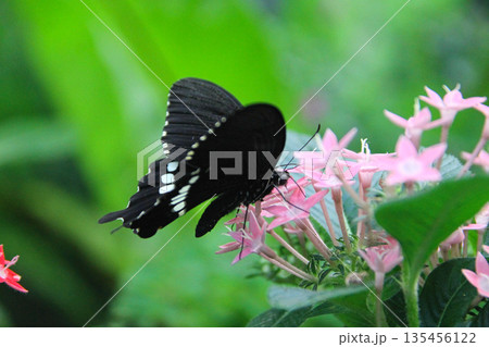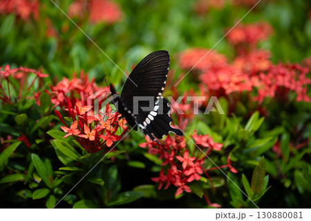 ペンタスの花の蜜を吸うシロオビアゲハ