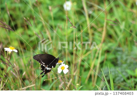 花の蜜を吸うかわいい蝶々 シロオビアゲハ