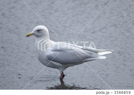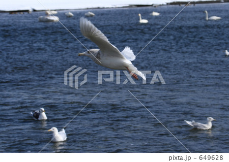 冬の根室や釧路の港で見られる純白の羽の美しい白いワシカモメ