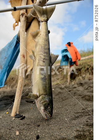 サケ釣り 鮭釣り アキアジ、オホーツク海 秋の風物詩