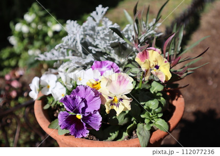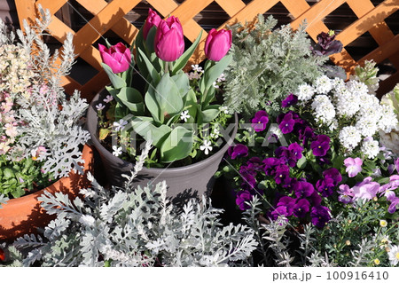 プランターに植えられた春の花々