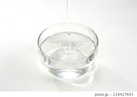 ガラスボールに注がれるハチミツシロップ 写真素材