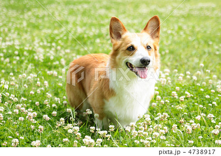 シロツメクサとコーギー