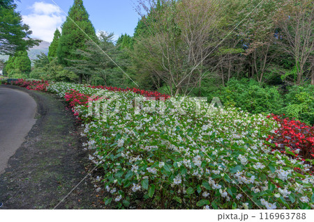 美しく咲き乱れるシロバナベゴニアの花「くじゅう花公園」大分県竹田市