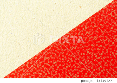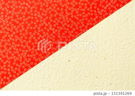 金色の花柄が入った赤い和紙と薄黄色の和紙