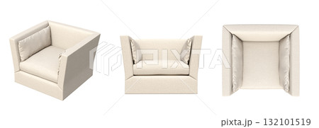 armchair isolate on a transparent background, comfortable furniture for home interior, 3D illustration, cg render