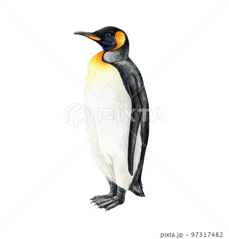 Penguin bird watercolor illustration. Hand drawn realistic beautiful emperor penguin. Wildlife Antarctica nature avian. Aptenodytes forsteri bird single image. Isolated on white background