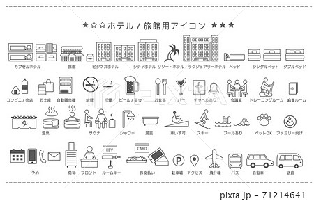 旅行シリーズ8 ホテル客室 カラーラインアイコンのセット