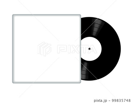 ジャケットから半分出たレコードの背景イラスト素材(白黒フレーム)
