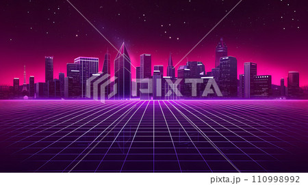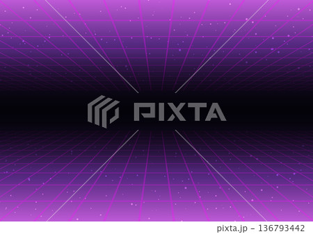 レトロフューチャーなパープルグリッド背景 80年代風ネオンカラーのサイバーパンクなベクター素材