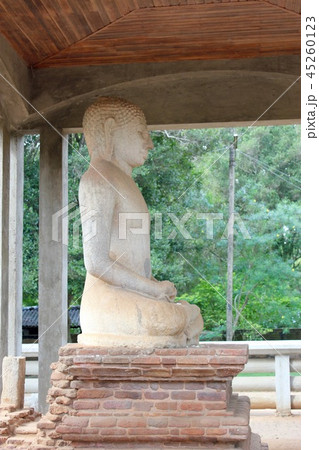 ポロンナルワの円形の仏塔ワタダーゲに鎮座する釈迦座像