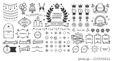 Cute Japanese elements. Decorative sparkles star and heart icons, frames and borders with traditional oriental shapes icons, simple minimalist banners. Vector title frame set