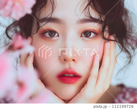 フローラルな美しさ:花びらに囲まれた日本人女性のナチュラルビューティ