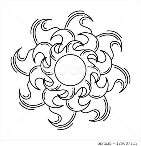Hand drawn sun with swirling waves in doodle style. Abstract sun with curved beams and sea inspired twirls isolated on white background. Concept of sun as energy, movement and ocean harmony.