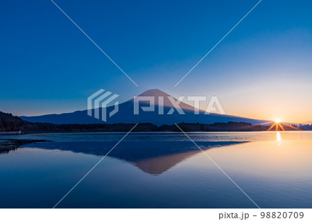(静岡県)夏の田貫湖 富士山 夜明け前