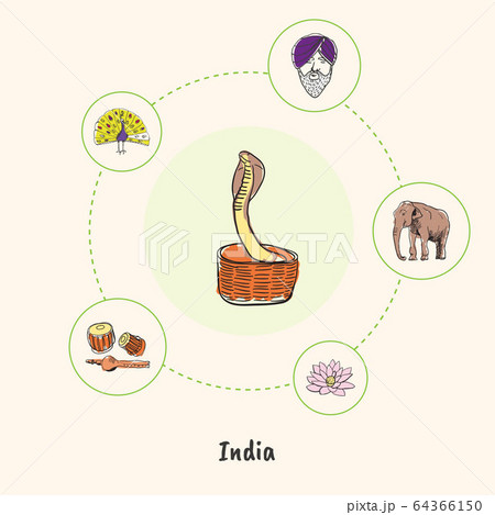 インドの手描きアイコンイラストセット EPS版は線の太さ等編集可能