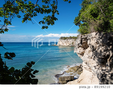 Macao shore with turquoise water and stone cliff. Dominican Republic