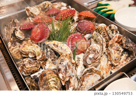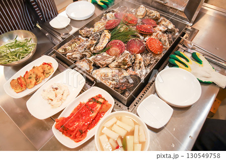 Korean Seafood Food. Steamed oysters and scallops