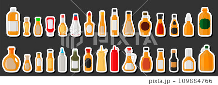 Illustration big kit varied glass bottles filled liquid sauce habanero