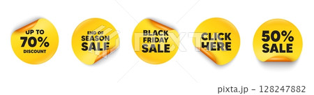Discount tag sticker tag. 50 percent discount, Black friday paper price banners. Up to 70 percent discount. Sale offer price sign. Special offer symbol. Save 70 percentages. Click here sticker. Vector