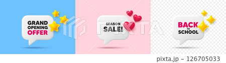 Season sale chat speech bubble. 3d stars, sparkles, hearts chat bubbles. Season sale tag. Special offer price sign. Advertising discounts symbol. Final sale, Back to school tag. Vector