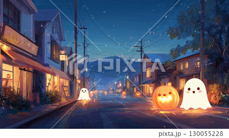 AI generated spooky Halloween fantasy scene with glowing jack o lanterns haunted house bonfire skeleton scarecrow black cat full moon and flying bats in eerie autumn night atmosphere