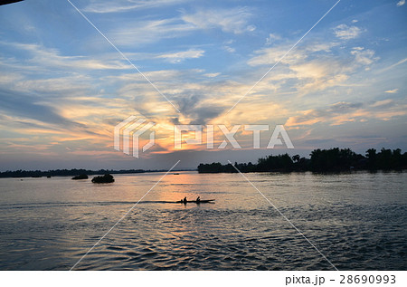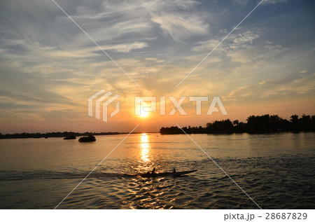 ラオス・シーパンドン ドンデット(デット島)からのメコン川の夕日 ラオス・チャンパーサック県デット島