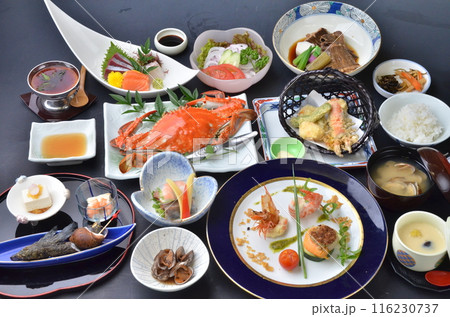 新鮮な海の幸と伝統的な日本料理のフルコース