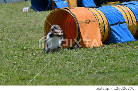 ダッシュするシェルティ ドッグアジリティ ドッグスクール ドッグスポーツ